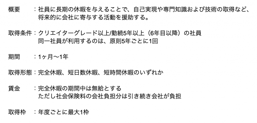 宍戸:ライフイベントやリフレッシュなど、ワークショプであがった様々な理由での休暇取得についても議論しましたが、目的が全く異なるため、一つの制度に含めるのは難しいと感じて。今後必要になる可能性はありますが、まずは自己実現に関する制度にまとめていきました。